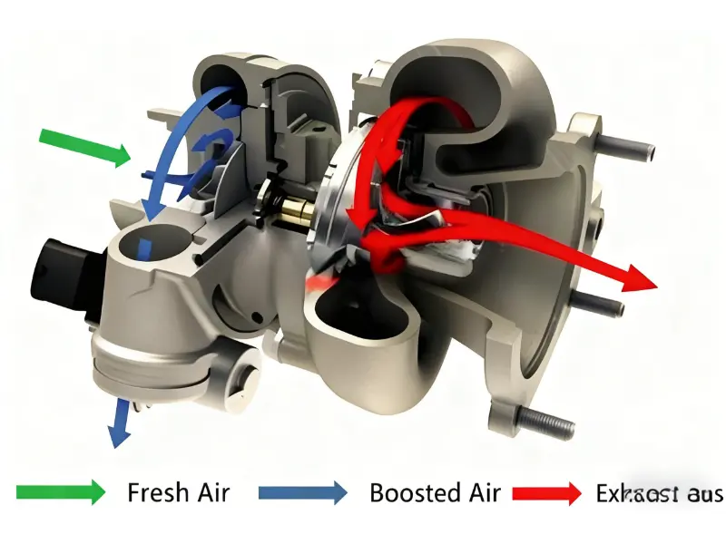 Turbargerning ikkita asosiy qismi bor: turbin va kompressor.